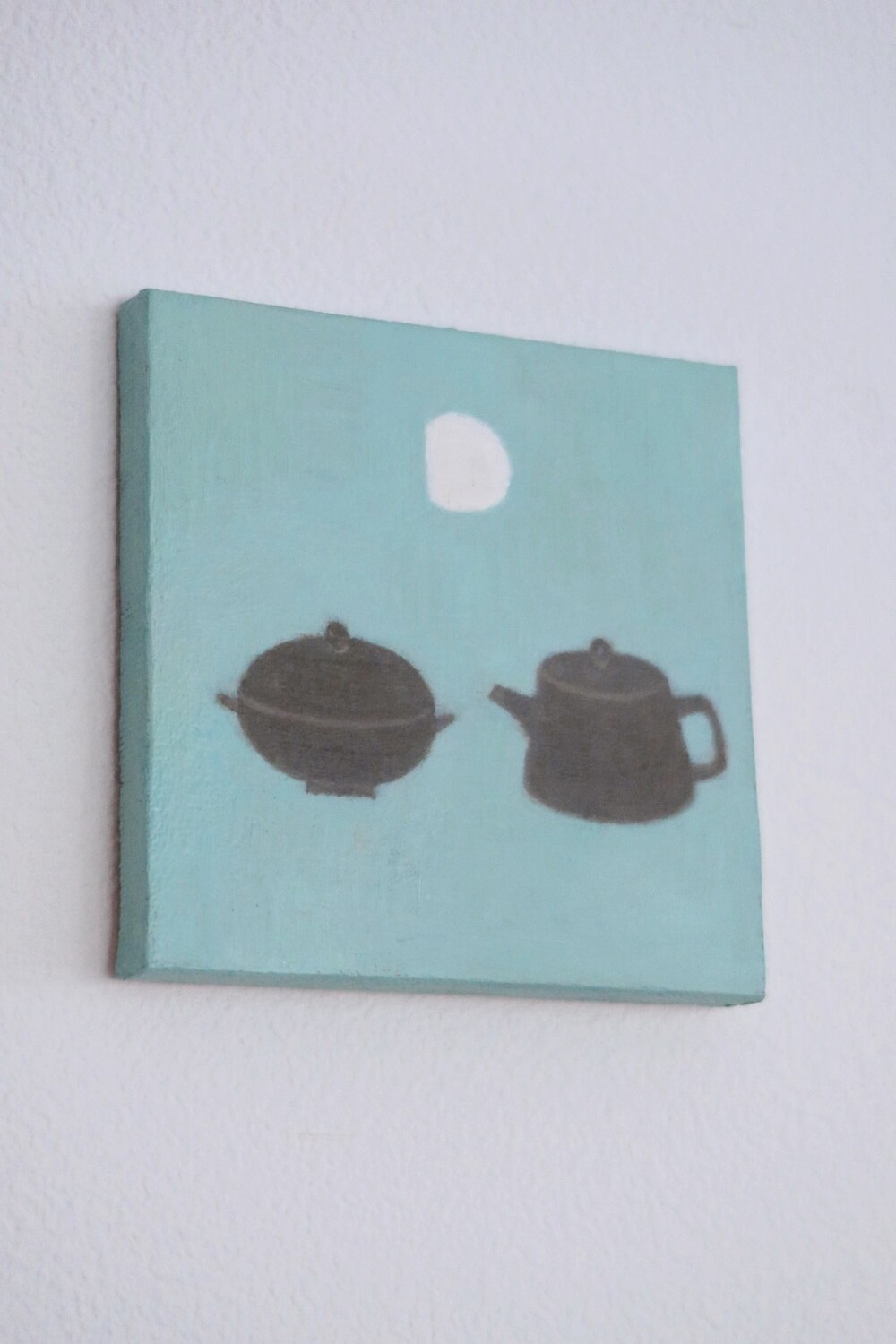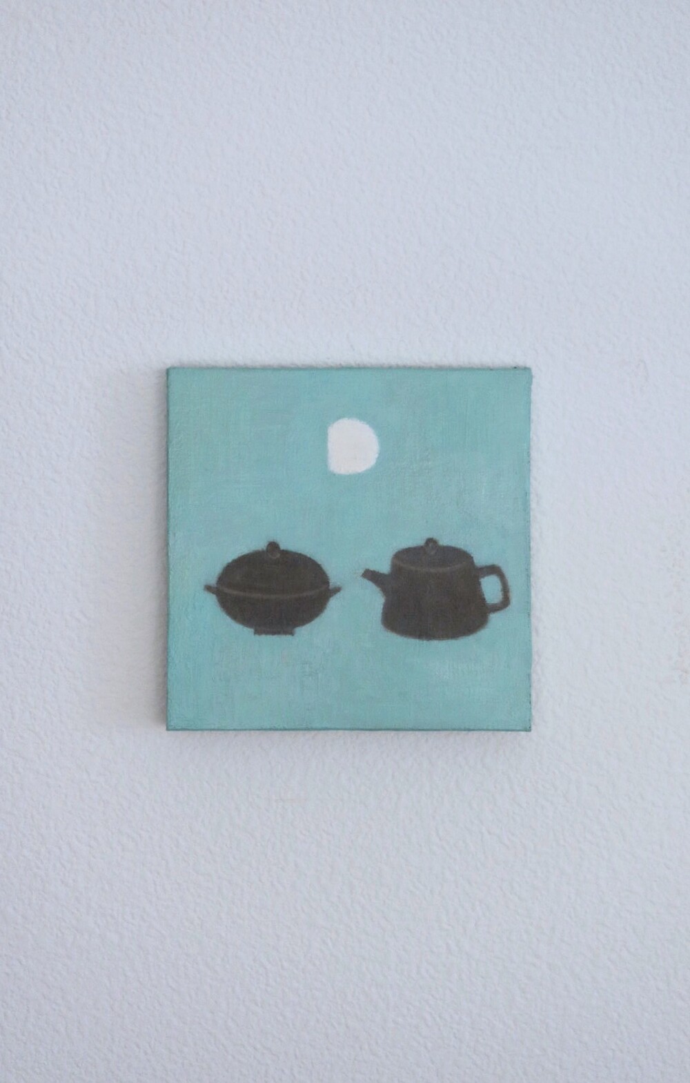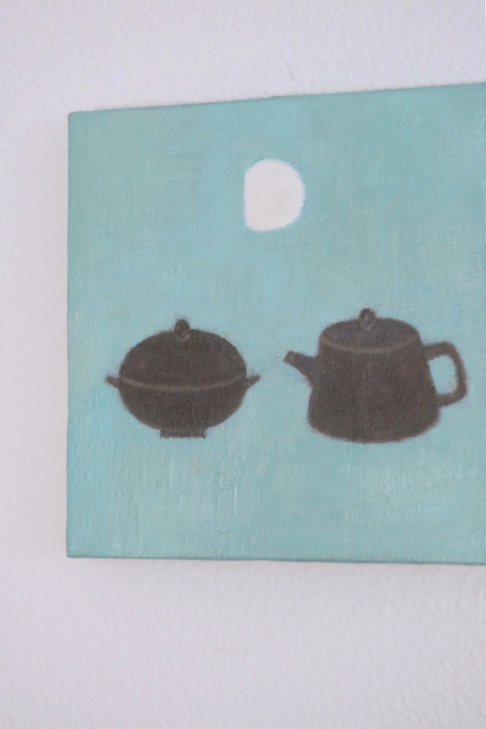 달과 함께 도자기가 그려져 있는 정물화 입니다.