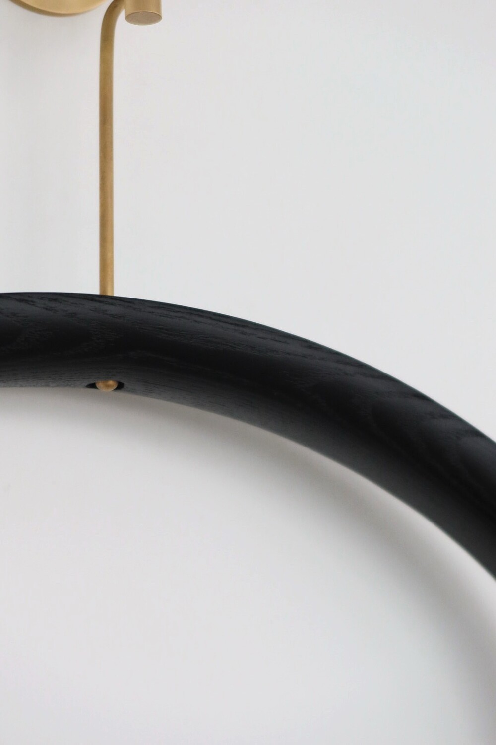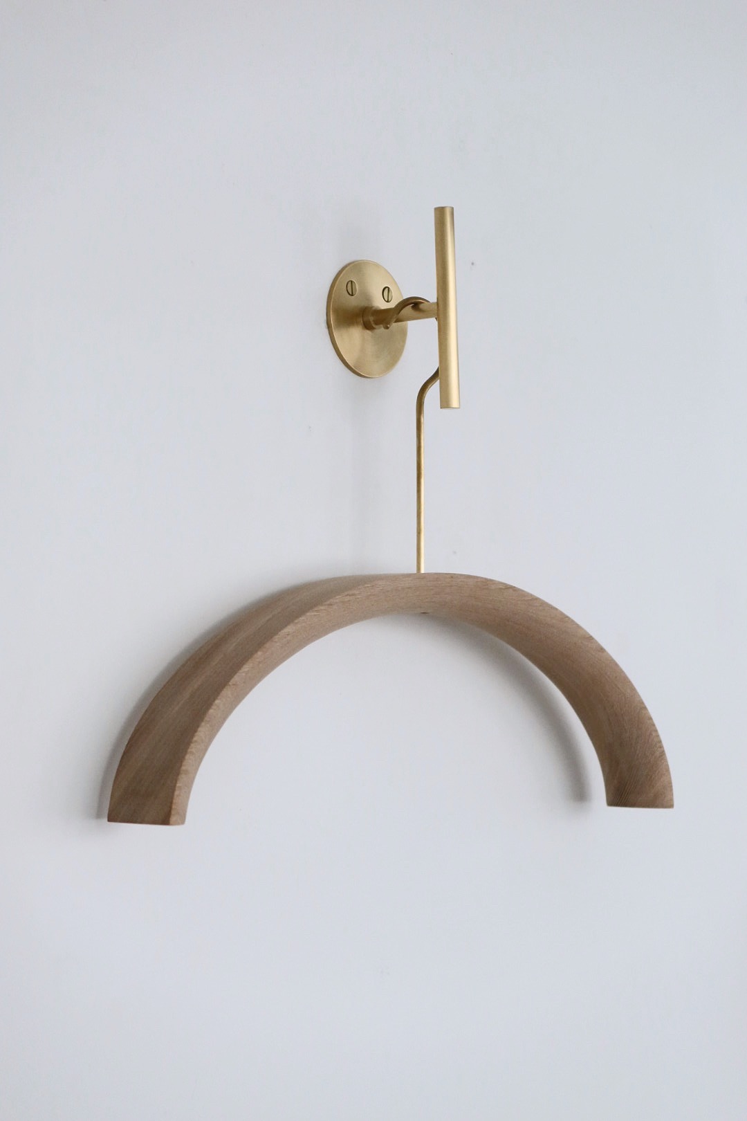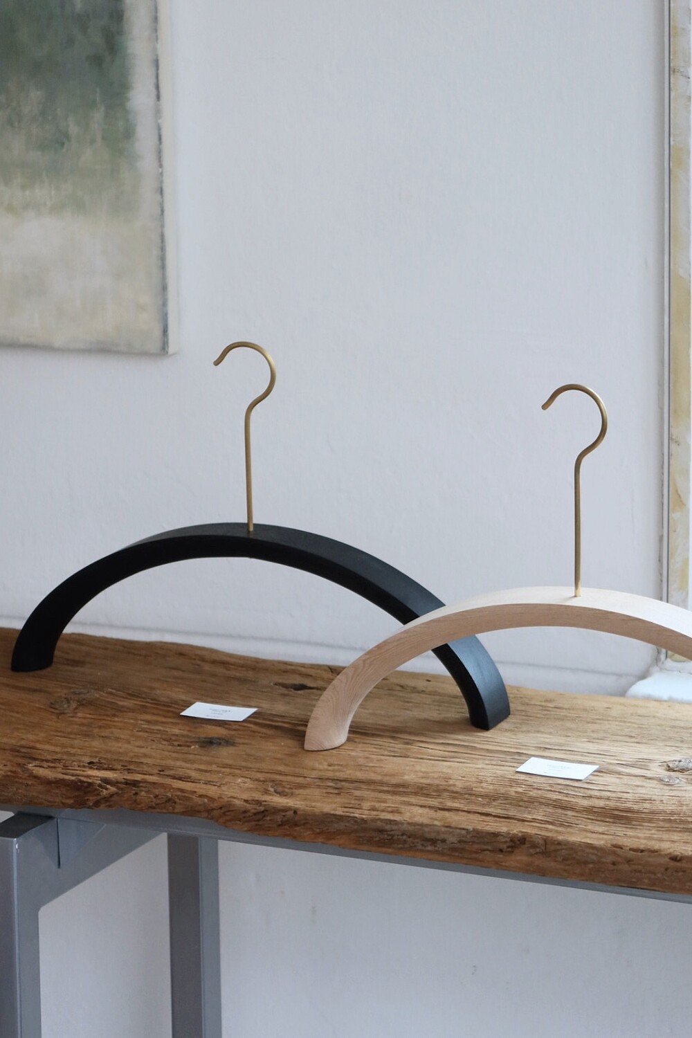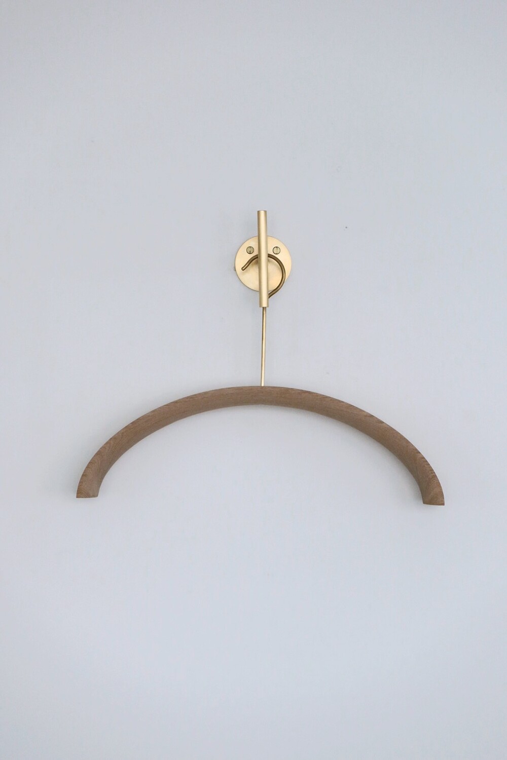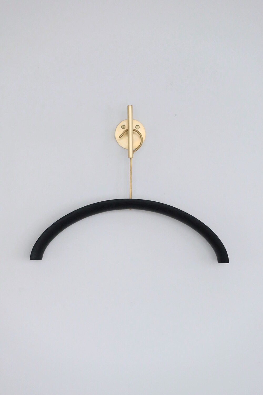 반달 형태를 지닌 옷걸이로 두께감이 있어 견고하며 행거 부분이 황동으로 제작하여 고급스러움을 더했다.