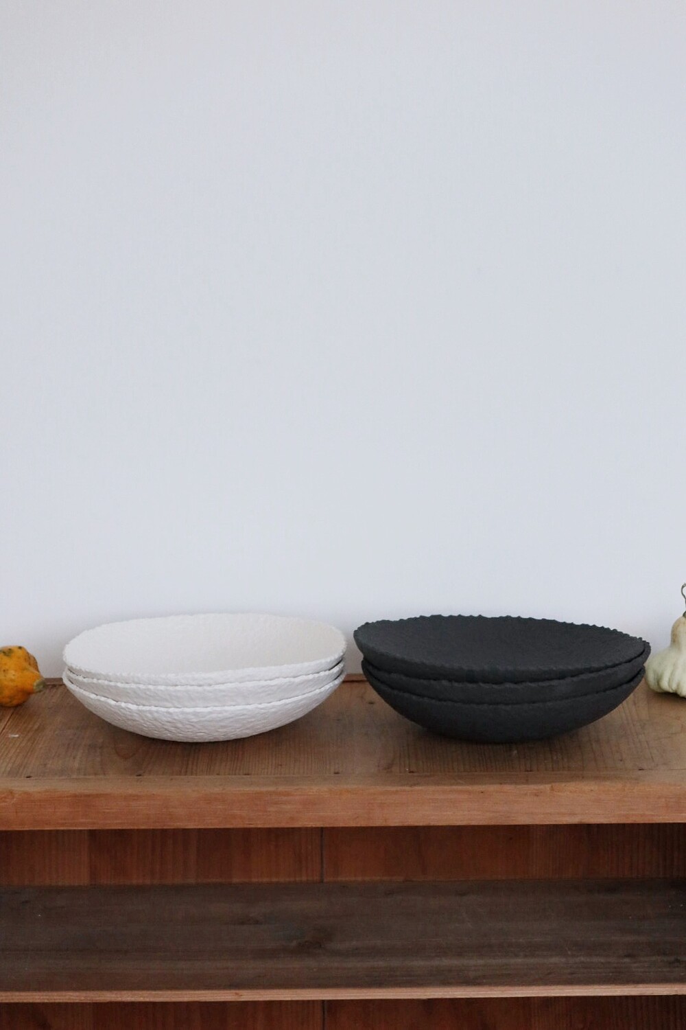 살짝 오목한 플레이트로, 국물이 있는 음식류를 담기에 적당하며파스타, 프렌치토스트 등의 음식과 잘 어울리는 작품입니다.