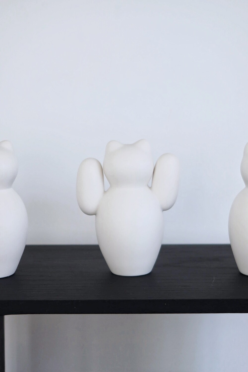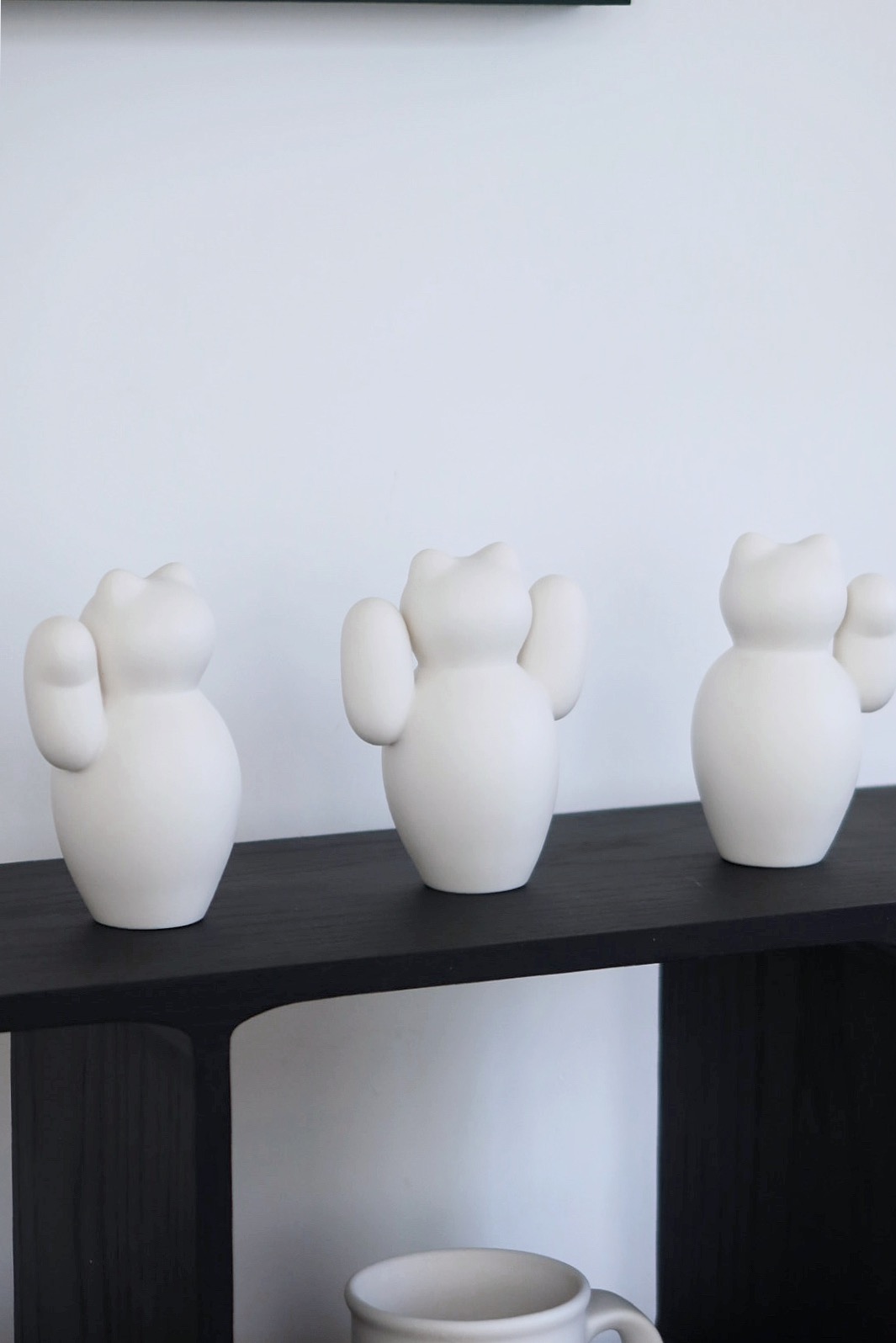 모던한 형태로 재해석한 키쿠치 슌지 작가의 세라믹 마네키 네코는 선물용으로도 좋은 작품입니다.
