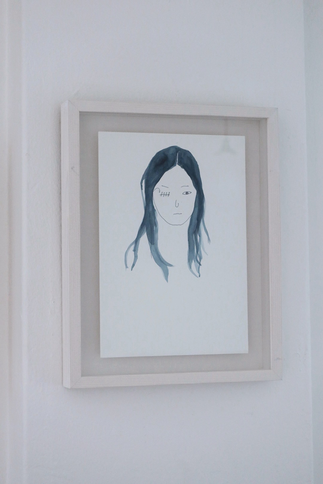 이번 전시에 출품된 손과 얼굴을 주제로 한 드로잉에서는 치유와 다짐의 의미를 담아 작가가 직접 ‘실’을 꿰매는 마무리 작업을 더했습니다.